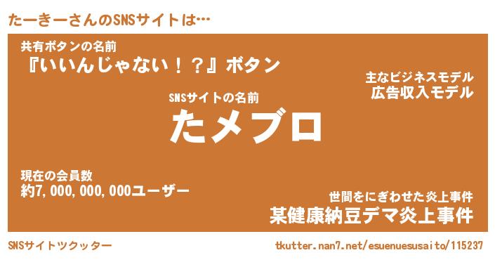 | 肩書あだ名 | 『たーきー社長』『たーきー大統領』 |