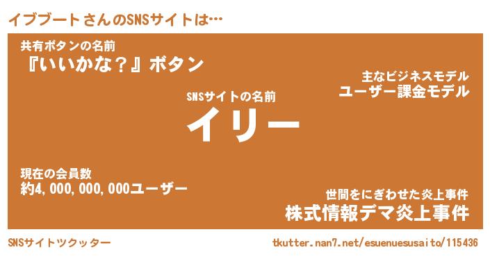 | 男性向けラノベタイトル風あだ名 | 『イブブートの憂鬱』 |