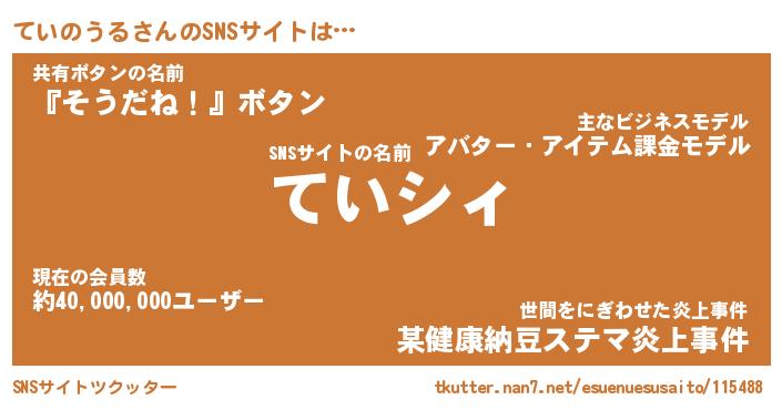 | ポケモン風あだ名 | 『テイチュウ』『テイノダネ』 |
