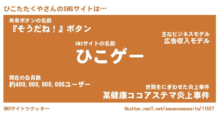 | 男性向けラノベタイトル風あだ名 | 『ひこたたくやの憂鬱』 |