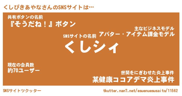 | ヘコむあだ名 | 『くしにゅー』『つくし』『くしっ子』 |