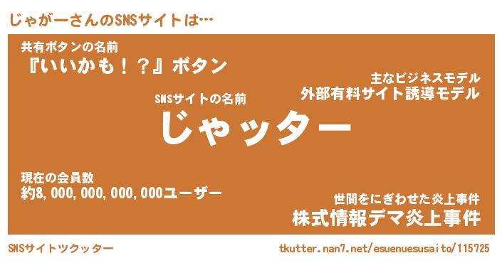 | 胡散臭い通販商品みたいなあだ名 | 『億万長者になれるブレスレット…その名も「じゃがー」』 |