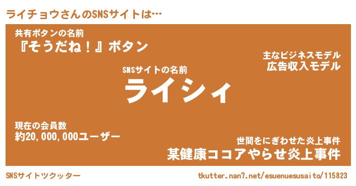 | ヘコむあだ名 | 『ライにー』『豆乳』『ライっ子』 |