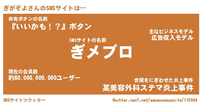 | ヘコむあだ名 | 『ぎがふぇ~』『なまこ酢』『ぎがを』 |