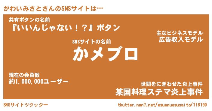 | ヘコむあだ名 | 『かわふぇ~』『豆乳』『かわを』 |