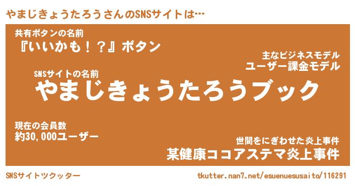 | 肩書あだ名 | 『やまじきょうたろう御曹司』 |