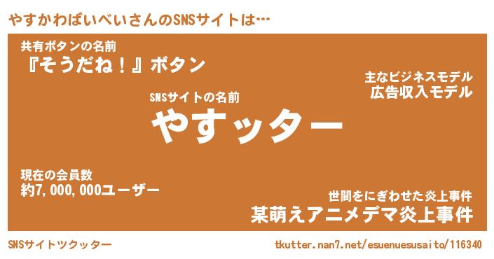 | ツイッター | やすかわばいべいさんのツイッターID『neet_star』 |