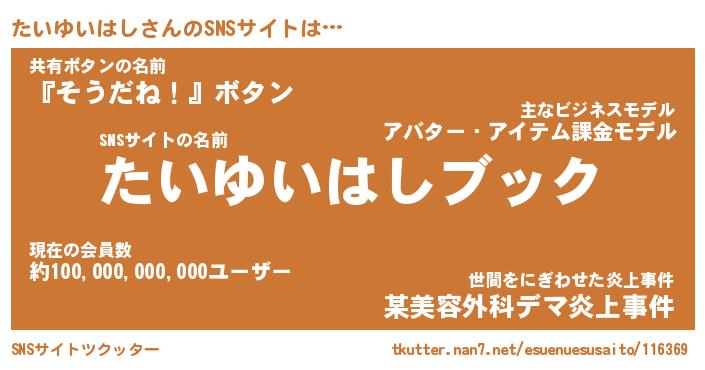 | 胡散臭い通販商品みたいなあだ名 | 『億万長者になれるブレスレット…その名も「たいゆいはし」』 |