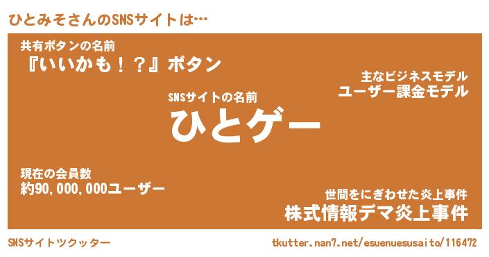 | 肩書あだ名 | 『ひとみそCEO』『ひとみそ国家主席』 |