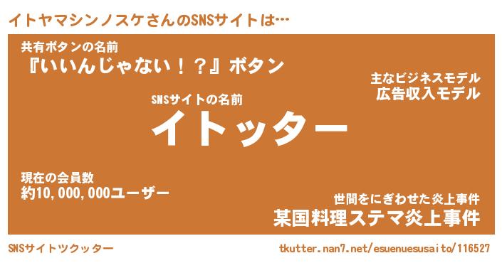 | 肩書あだ名 | 『イトヤマシンノスケ店長』 |
