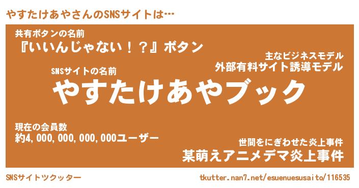 | 胡散臭い通販商品みたいなあだ名 | 『億万長者になれるブレスレット…その名も「やすたけあや」』 |