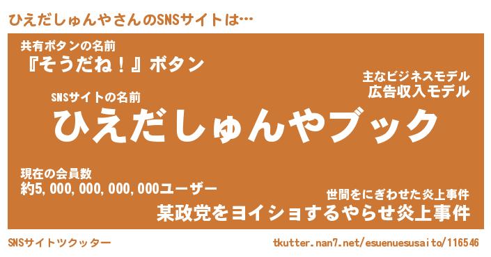 | 男性向けラノベタイトル風あだ名 | 『ヒエダシュンヤアートオンライン』 |