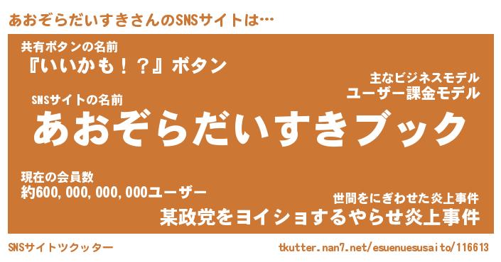 | 伝説のあだ名 | 『封印されしスナイパーあおぞらだいすき』 |