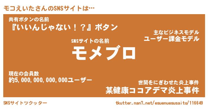 | 肩書あだ名 | 『モコえいたCEO』『モコえいた国家主席』 |