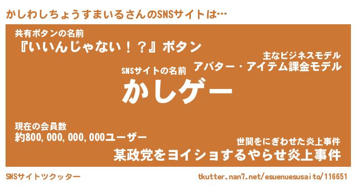 | 伝説のあだ名 | 『伝説のスナイパーかしわしちょうすまいる』 |
