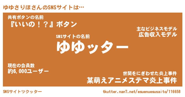 | ファンタジー風あだ名 | 『ユユフェル』『エターナルユユサリホー』 |