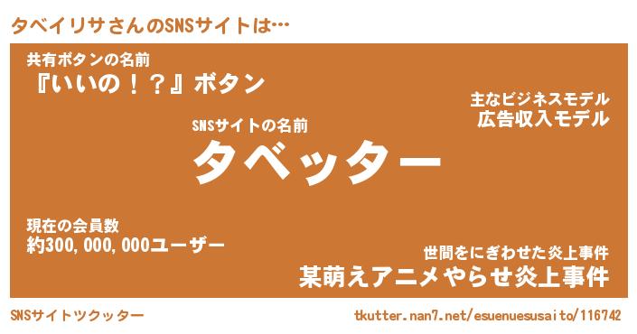 | ヒーロー風カッコイイあだ名 | 『スーパータベイリサ』『黄金騎士タベ』 |