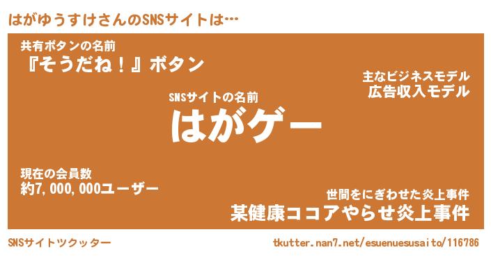 | 伝説のあだ名 | 『伝説のスナイパーはがゆうすけ』 |