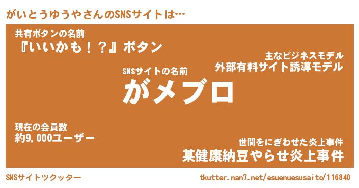 | ヘコむあだ名 | 『がいもー』『なまこ酢』『がい太郎』 |