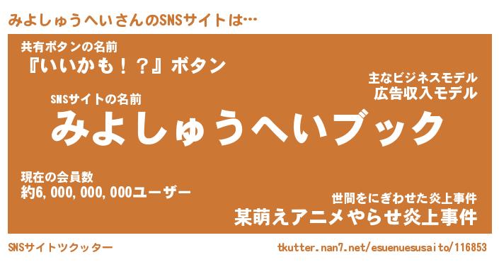| ツイッター | みよしゅうへいさんのツイッターID『namakemono_man』 |