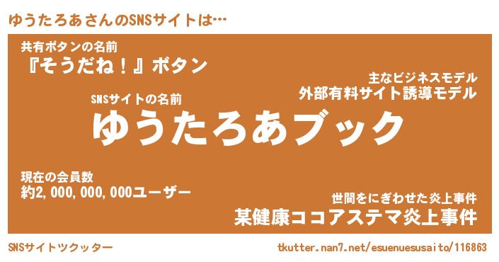 | ヘコむあだ名 | 『ゆうもー』『酢こんぶ』『ゆう太郎』 |