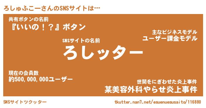 | 胡散臭い通販商品みたいなあだ名 | 『億万長者になれるブレスレット…その名も「ろしゅふこー」』 |