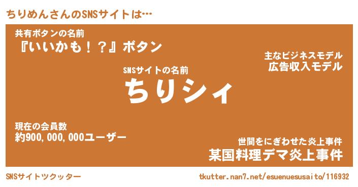 | ファンタジー風あだ名 | 『チリフェル』『エターナルチリメンー』 |