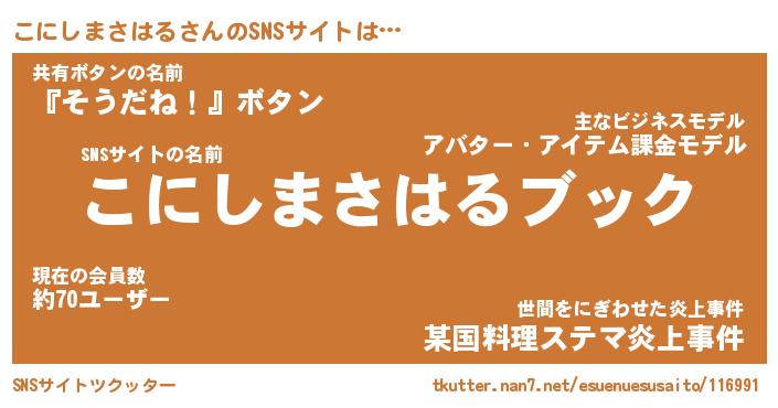 | 恥ずかしいあだ名 | 『プリティーこにしまさはる』『こにちん』 |