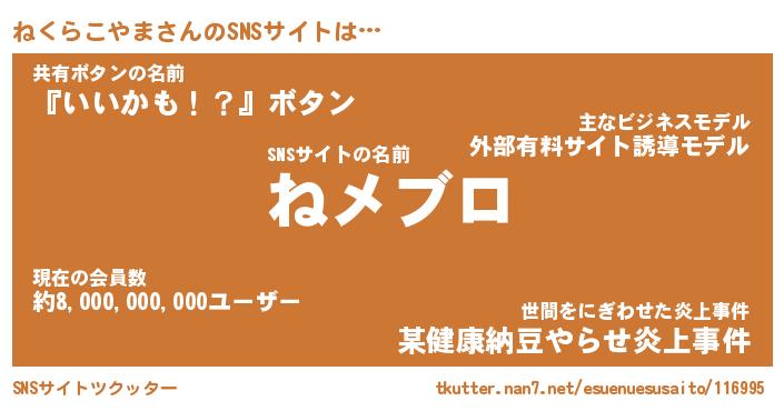 | ヘコむあだ名 | 『ねくもー』『酢こんぶ』『ねく太郎』 |