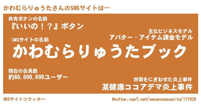 | 肩書あだ名 | 『かわむらりゅうた御曹司』 |