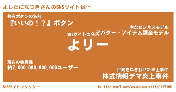 | 料理風あだ名 | 『節約★よしたになつきと油揚げの玉子丼』 |