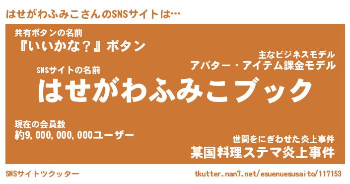 | ヘコむあだ名 | 『はせにー』『なまこ酢』『はせ太郎』 |