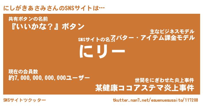| ヘコむあだ名 | 『にしもー』『豆乳』『にしを』 |