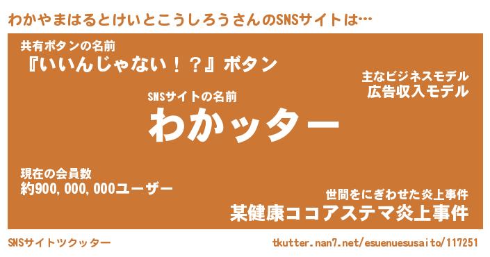 | 胡散臭い通販商品みたいなあだ名 | 『億万長者になれるブレスレット…その名も「わかやまはるとけいとこうしろう」』 |