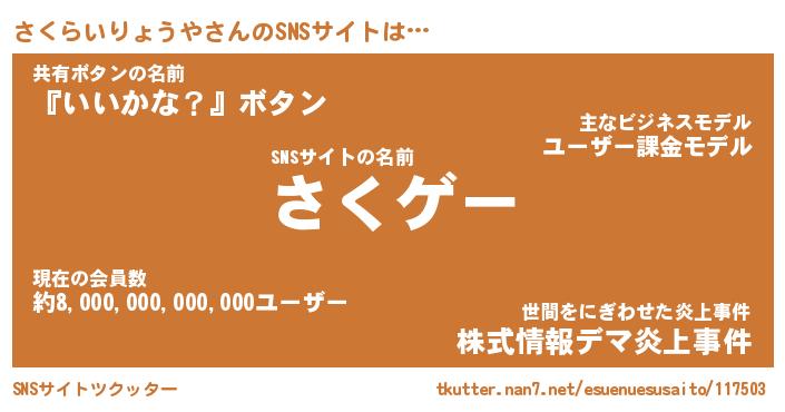 | 肩書あだ名 | 『さくらいりょうや社長』 |