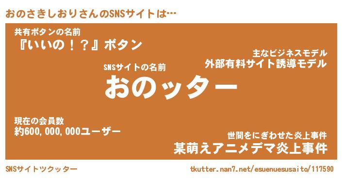 | 男性向けラノベタイトル風あだ名 | 『オノサキシオリアートオンライン』 |