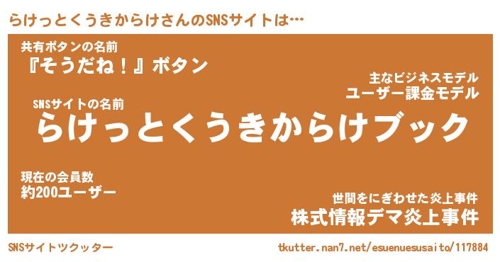 | 肩書あだ名 | 『らけっとくうきからけ店長』 |