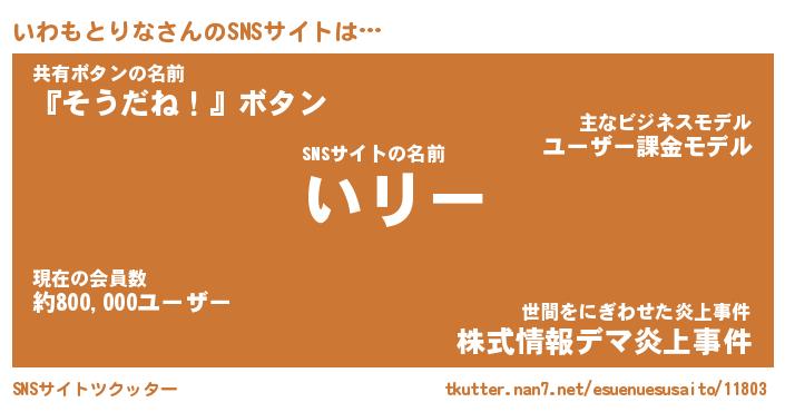 | 男性向けラノベタイトル風あだ名 | 『いわもとりなの憂鬱』 |
