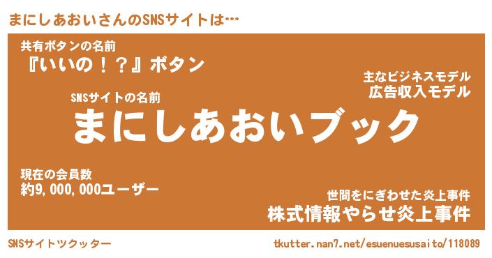| 欧米人風あだ名 | 『マイケルまにしあおい』 |