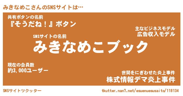 | 胡散臭い通販商品みたいなあだ名 | 『億万長者になれるブレスレット…その名も「みきなめこ」』 |