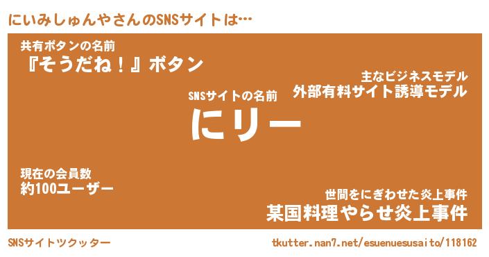 | 肩書あだ名 | 『にいみしゅんや御曹司』 |