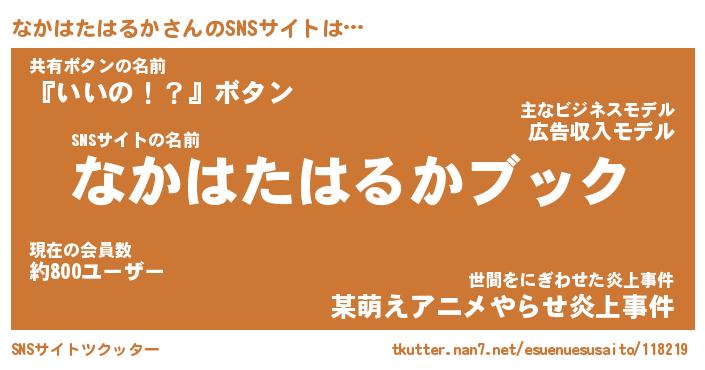 | 男性向けラノベタイトル風あだ名 | 『ナカハタハルカアートオンライン』 |