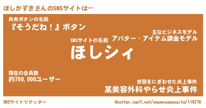 | ファンタジー風あだ名 | 『ホシフェル』『エターナルホシカズキー』 |