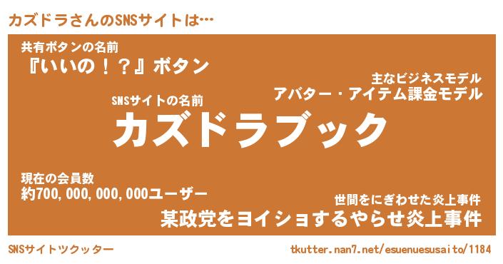 | 肩書あだ名 | 『カズドラ社長』『カズドラ総理大臣』 |