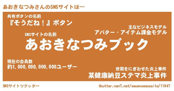 | 胡散臭い通販商品みたいなあだ名 | 『億万長者になれる霊験あらたかなお札…その名も「あおきなつみ」』 |