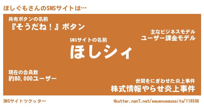 | ファンタジー風あだ名 | 『ホシフェル』『エターナルホシグモー』 |