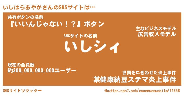 | 胡散臭い通販商品みたいなあだ名 | 『必ず成功する霊験あらたかなお札…その名も「いしはらあやか」』 |
