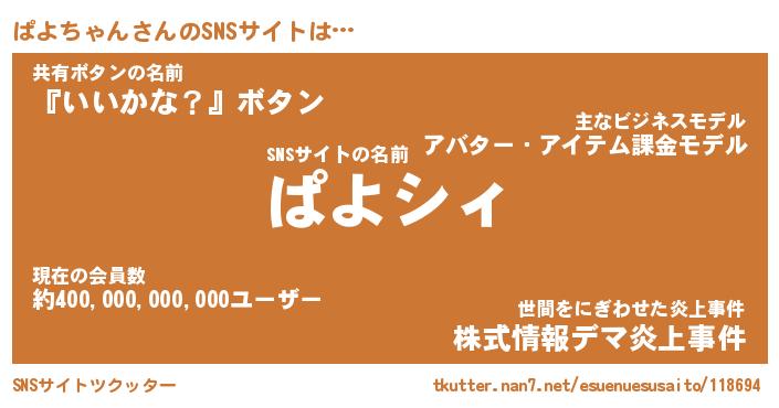 | ポケモン風あだ名 | 『パヨチュウ』『パヨチダネ』 |