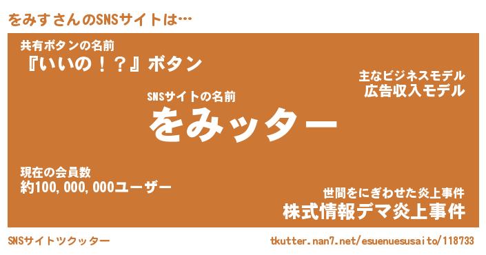 | 胡散臭い通販商品みたいなあだ名 | 『億万長者になれるブレスレット…その名も「をみす」』 |