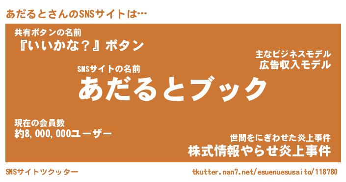 | ヘコむあだ名 | 『あだにー』『つくし』『あだぷりん』 |